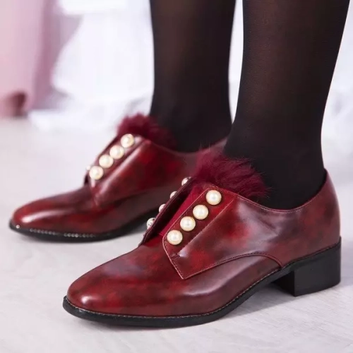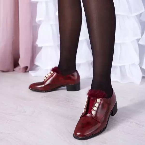 OUTLET Vínové polobotky s perlami Nessi - Obuv
