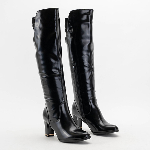 Dámské černé lakované kozačky nad kolena na sloupku Latoras - Obuv
