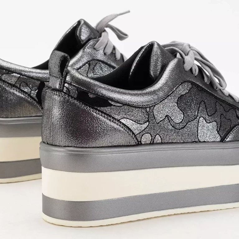 - Dámské kalhoty na vysoké platformě, vyrobené z lesklé látky. Svršek na šněrování, stélka z ekokůže. Stylový doplněk ke každému outfitu! Poznámka: výrobek má škrábance na materiálu.