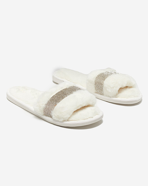 Dámské bílé kožešinové pantofle s kubickými zirkony Tiko - Obuv