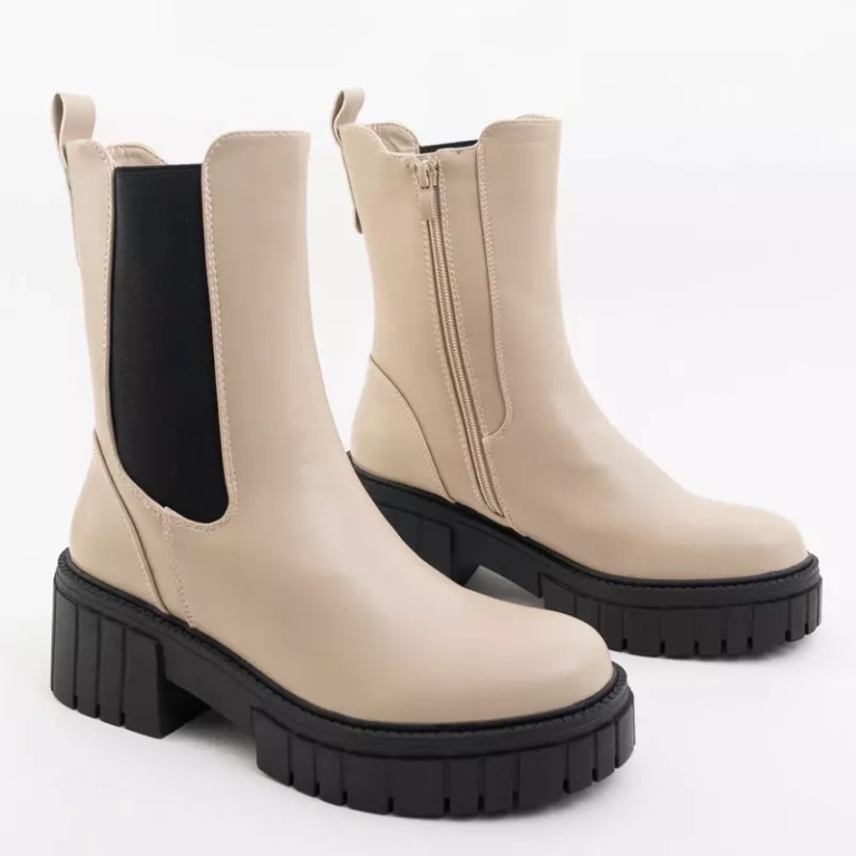 VÝPRODEJ Béžové kozačky Lemmt - Obuv
