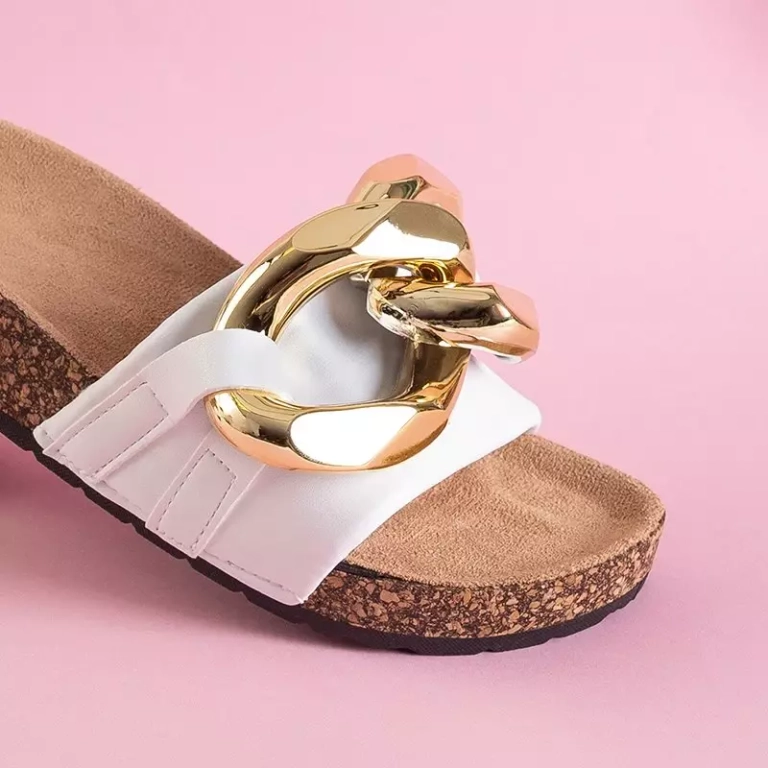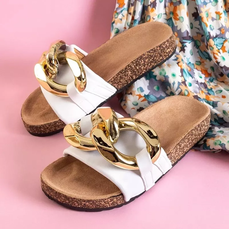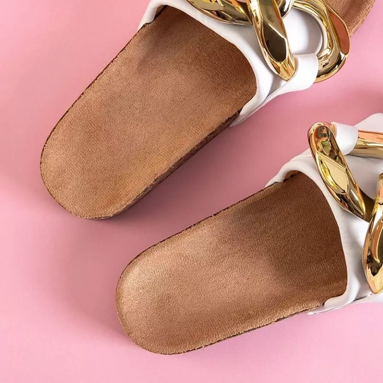 OUTLET Dámské bílé pantofle se zlatým zdobením Deirdre - Obuv