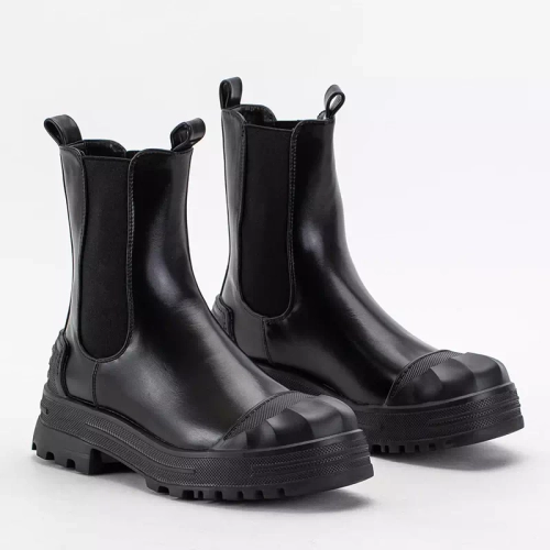 - Vysoké dámské kozačky z ekologické kůže. Model bez zapínání, uvnitř jemná izolace, podrážka je z gumy.