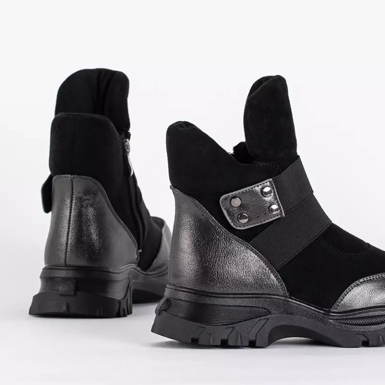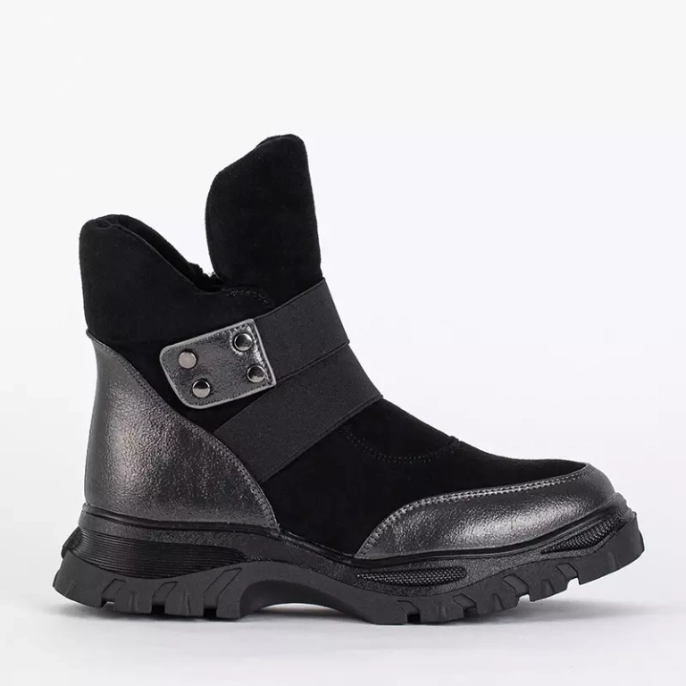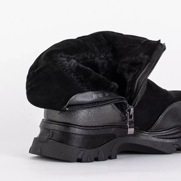 - Úzké dětské kozačky s plochou podrážkou, vyrobené z eko semiše. Vnitřek boty je zateplen hustým kožíškem příjemným na dotek. Svršek zdobí gumová spona. Teplé a pohodlné! Poznámka: výrobek má na materiálu stopy lepidla.