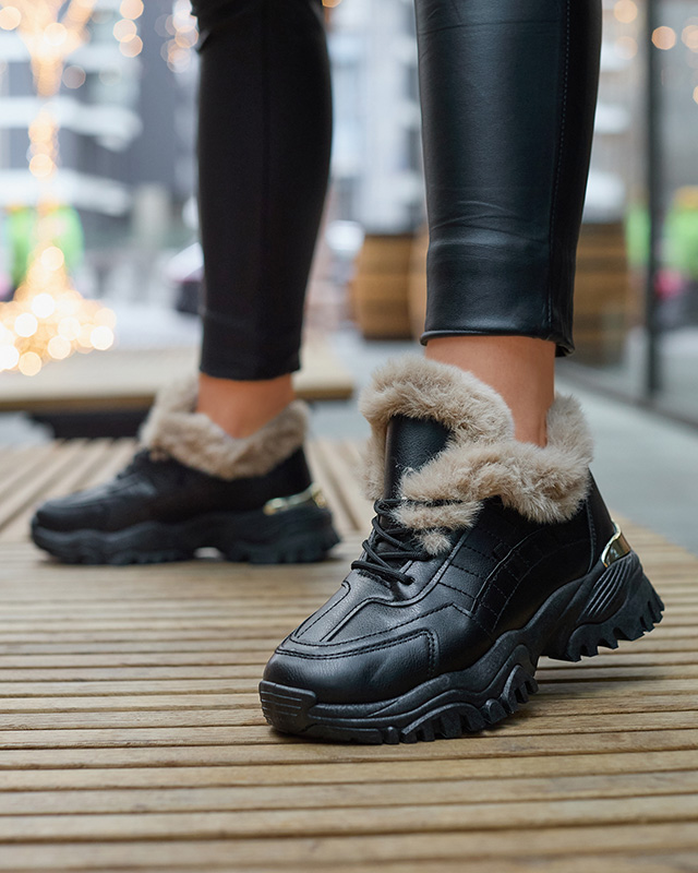Černá sportovní obuv pro ženy s kožíškem Flixi - Obuv