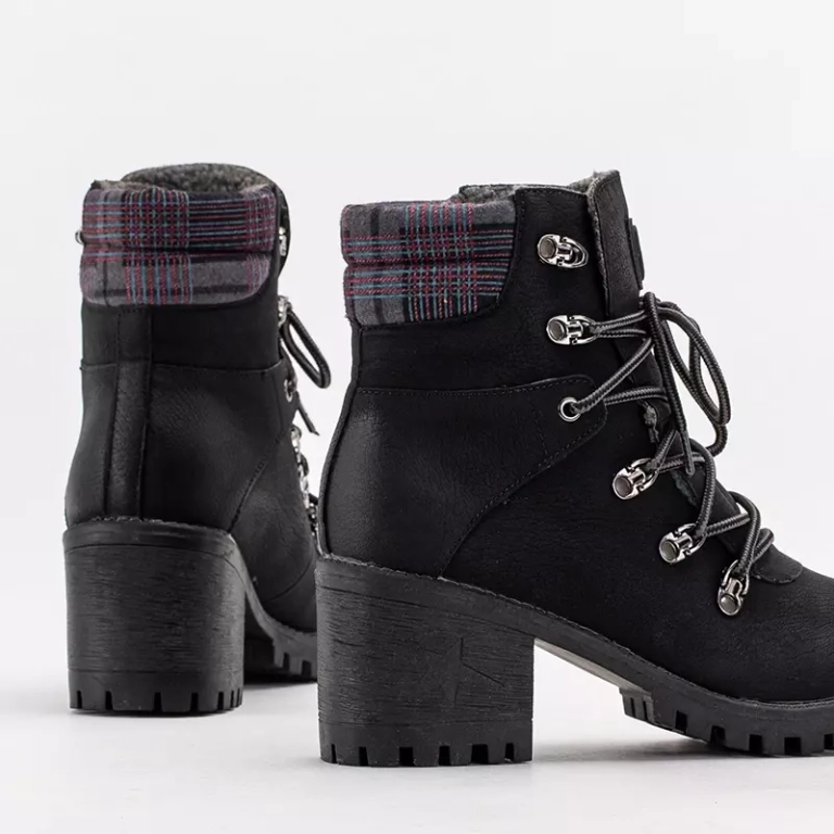 - Dámské kotníkové boty na gumovém podpatku typu post, vyrobené z ekologické kůže. Model na šněrování, vycpaný ovčí kůží. Skvělý doplněk k šatům i svetru! Poznámka: výrobek má škrábance na materiálu.