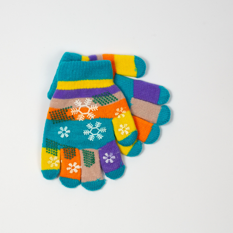- Dívčí rukavice z měkkého příjemného materiálu! Model zdobí třpytky, barevné vsadky a potisk sněhových vloček. Ideální na procházky v chladnějších dnech!