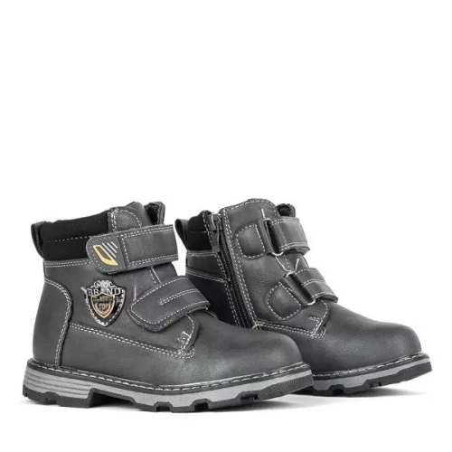 - Neuvěřitelně pohodlné chlapecké turistické boty z ekologické kůže. Uvnitř mají kožešinovou izolaci. Model se zapíná na suchý zip a zip. Svršek je zdobený odznakem na boku. Poznámka: výrobek má škrábance na materiálu.