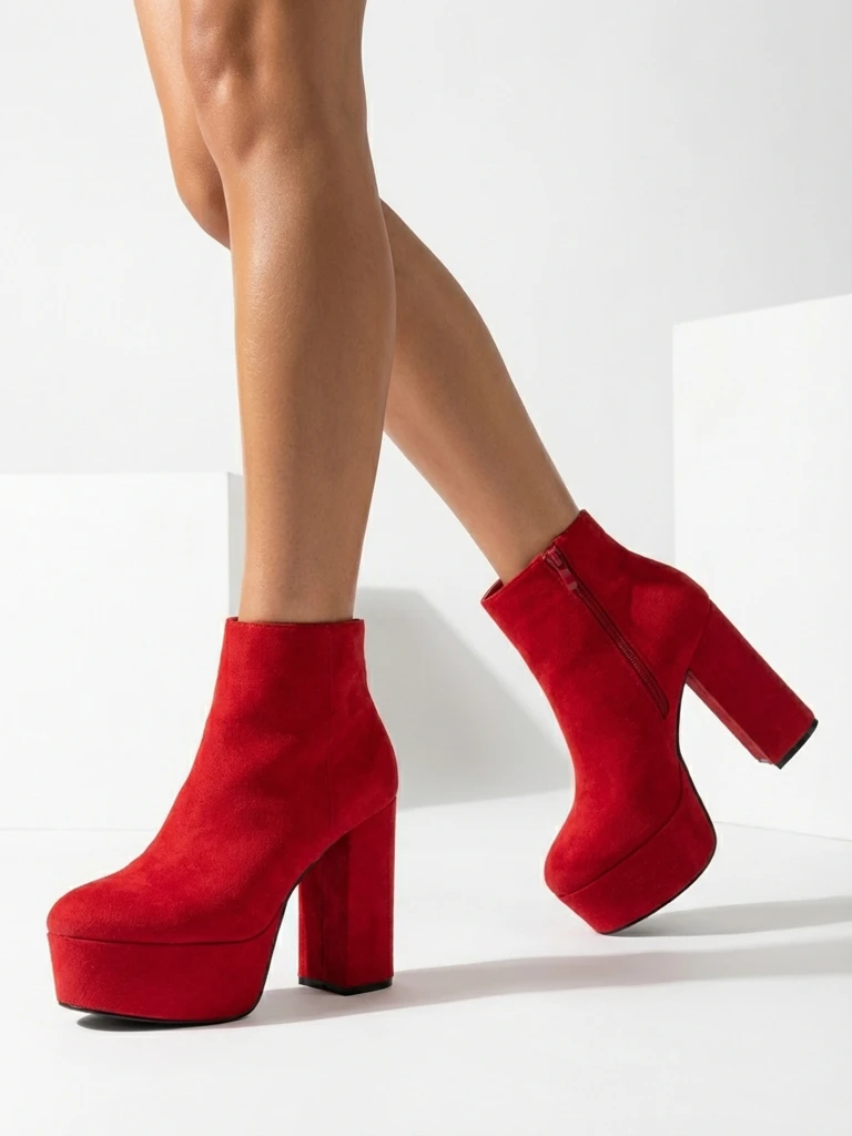 - Módní dámské kozačky s vysokým sloupkem a masivní platformou. Svršek je vyroben z měkkého ekologického semiše. Uvnitř mají jemnou kožešinovou izolaci. Zapínají se na zip na boku.