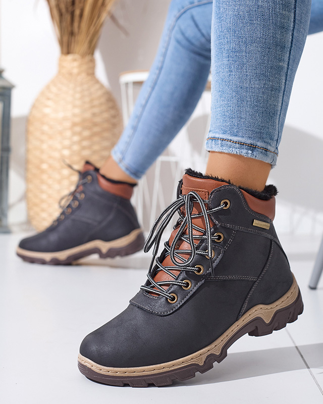 Černé dámské turistické boty se zavazováním s kožešinou Poritsu - Obuv