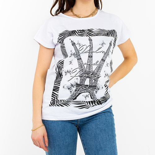 Dámské bílé tričko s barevným potiskem a třpytkami - Oblečení