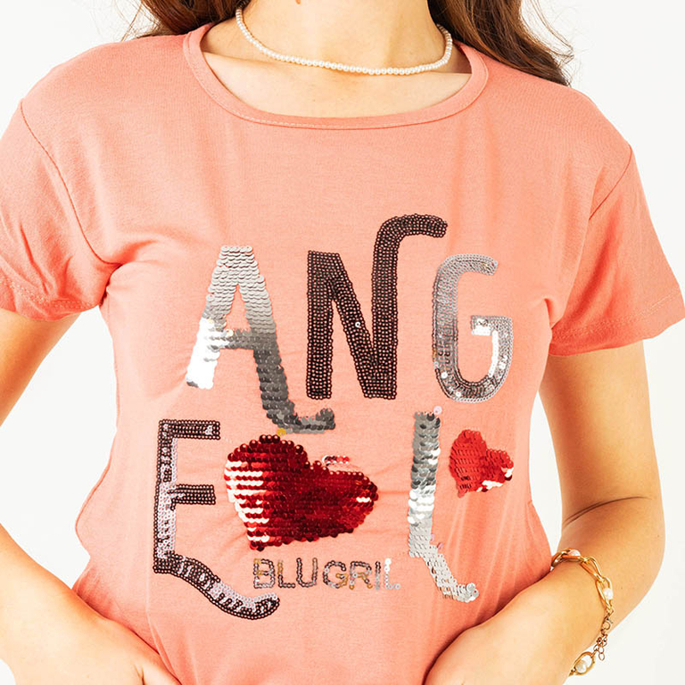 Dámské korálové tričko s flitrovým nápisem - Clothing