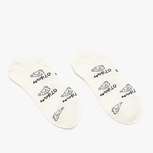 Krémové dámské kotníkové ponožky s nápisy a motivem medvídka - Spodní prádlo