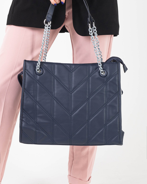 Tmavě modrá elegantní dámská kabelka s uchy na řetízky - Doplňky