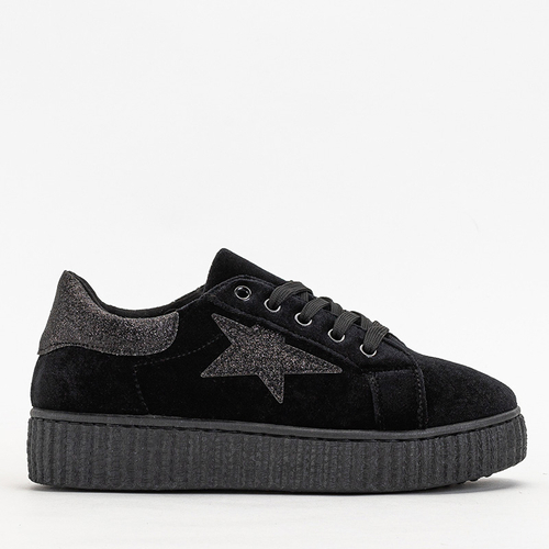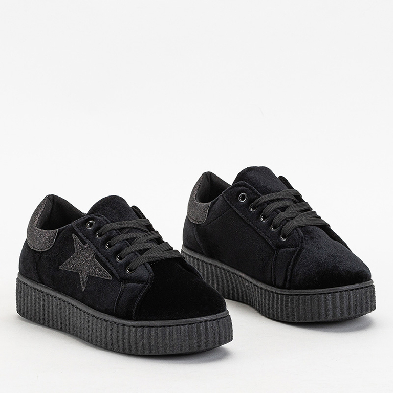 - Ležérní dámské tenisky ve stylu sneakers, vyrobené z materiálu a la velur. Svršek má třpytivé vsadky a střed bot je podšitý látkou. Lehké a pohodlné boty na každý den!
