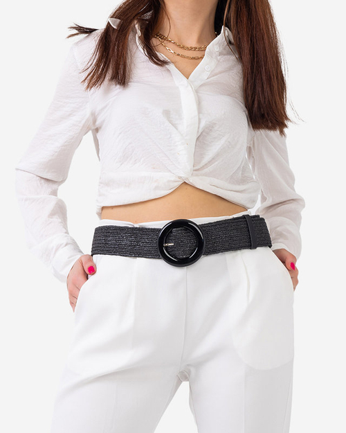 - Dámský pletený, elastický pásek s kulatou plastovou sponou, zapínání na klasický jednopin. Skvělý doplněk k vašim outfitům!