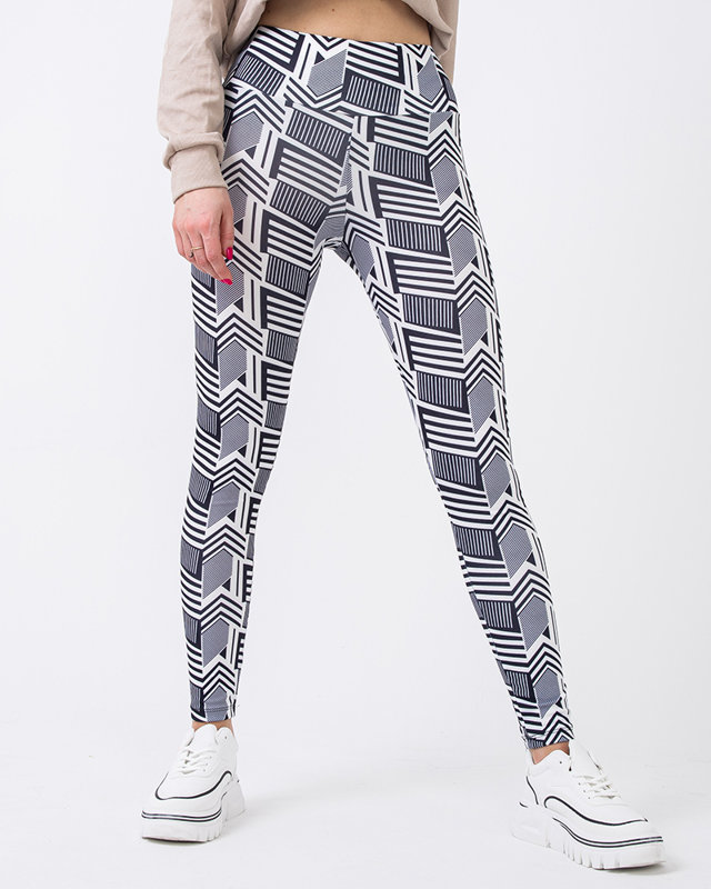 Vzorované dámské černo-bílé legíny s vysokým pasem - Oblečení