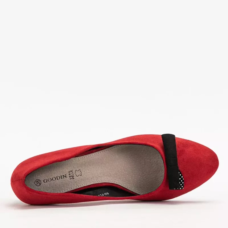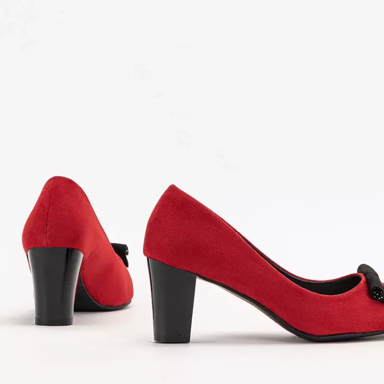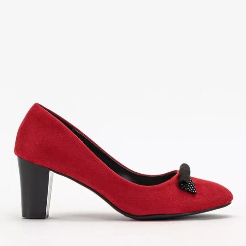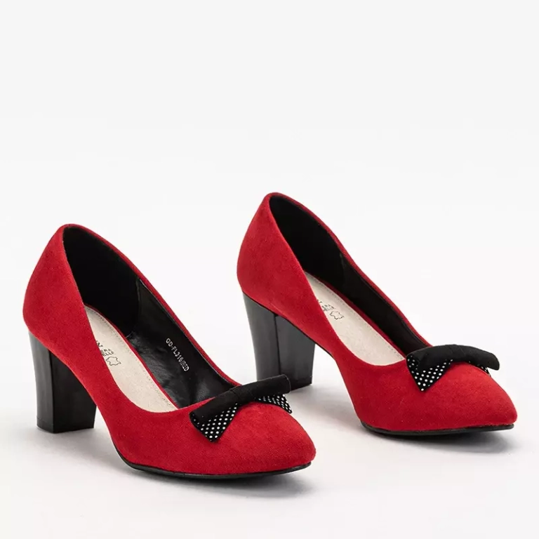OUTLET Červené dámské lodičky na sloupku s mašlí Minolsi - Boty