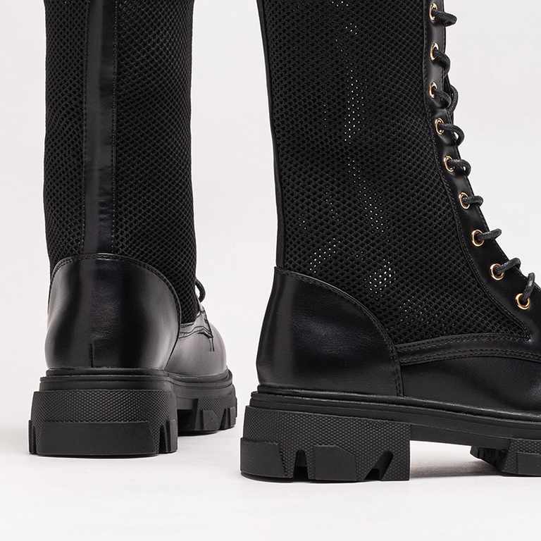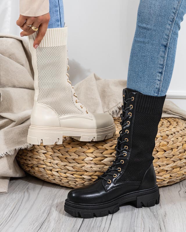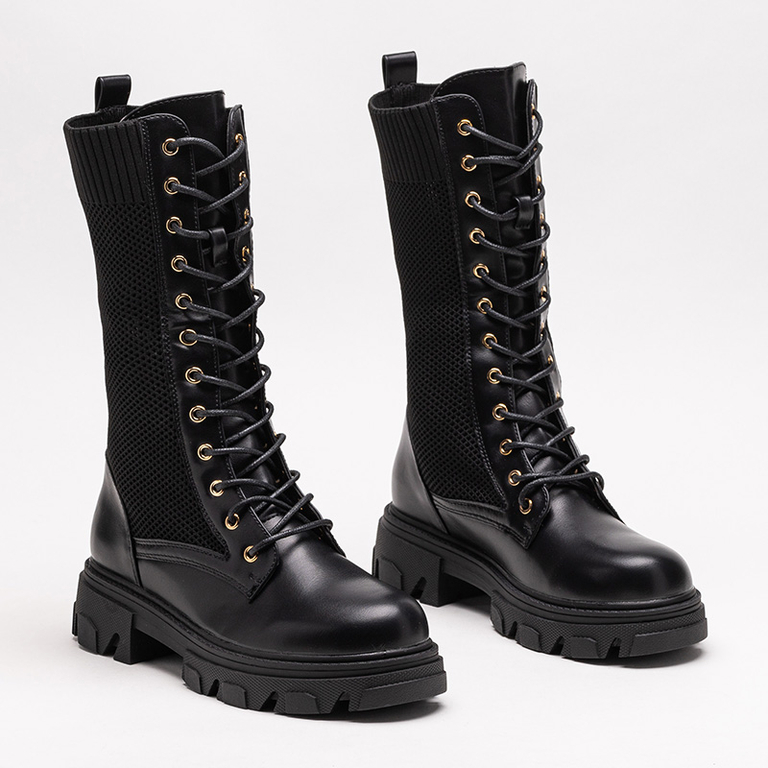 • Dámské kozačky z ekologické kůže zakončené ažurovým svrškem z elastické tkaniny. Model má uvnitř vložku z ekokůže. DÁMSKÉ ČERNÉ BOTY NEVODOU BOTAČKY BUHOMI