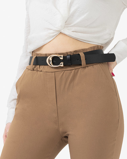 Dámský černý pásek se zlatou sponou ve tvaru "C" - Doplňky
