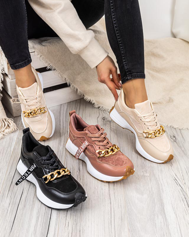 - Mega stylová dámská sportovní obuv pro volný čas, zdobená kovovým řetízkem a nápisy. Svršek je vyroben z kombinace ekologické kůže a ekologické jelenice. Vnitřek je podšitý látkovým materiálem. Perfektní základ pro každý den!