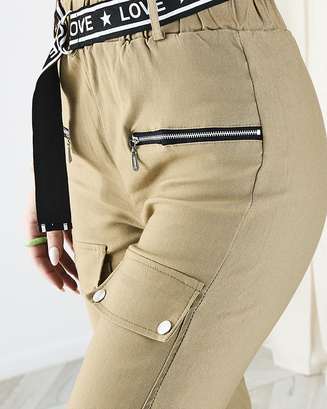 Béžové dámské cargo kalhoty s kapsami - Oblečení