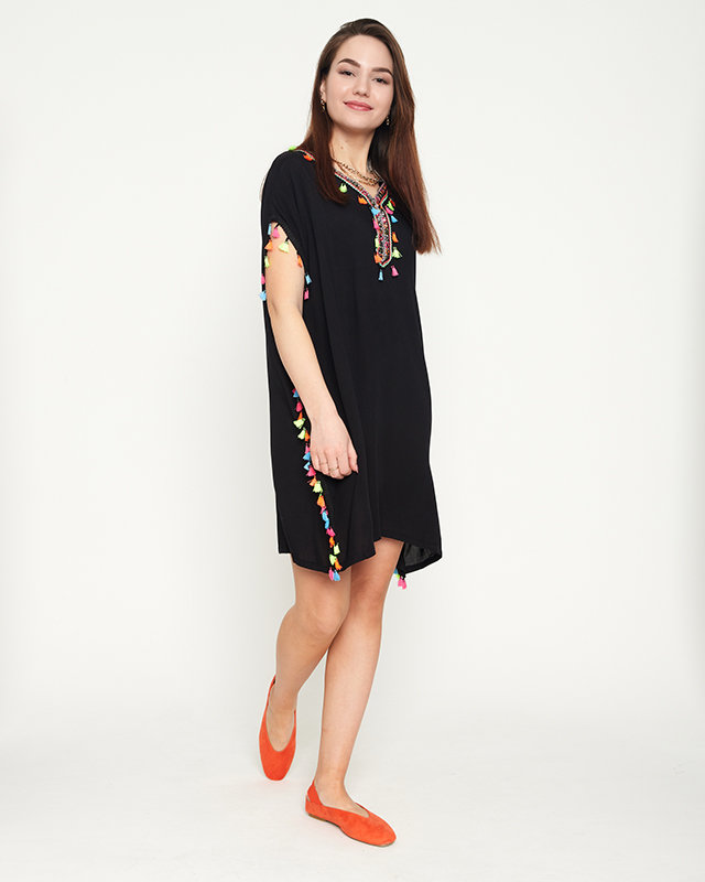Dámská černá letní plážová tunika s třásněmi - Oblečení