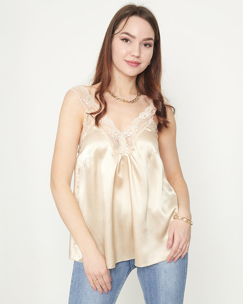 Dámské béžové tričko s krajkovými ramínky - Oblečení