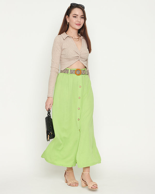 - Dámská midi sukně z příjemného bavlněného materiálu. Elastická guma v pase a zapletený pásek. Zapínací model. POZNÁMKA: Přesnost měření (+/-) 1 cm.