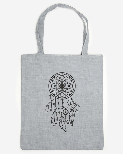 • Nákupní taška přes rameno z měkké látky s ozdobným potiskem lapače snů na přední straně. Zapínání na zip, uvnitř velká přihrádka a malá kapsička na zip.