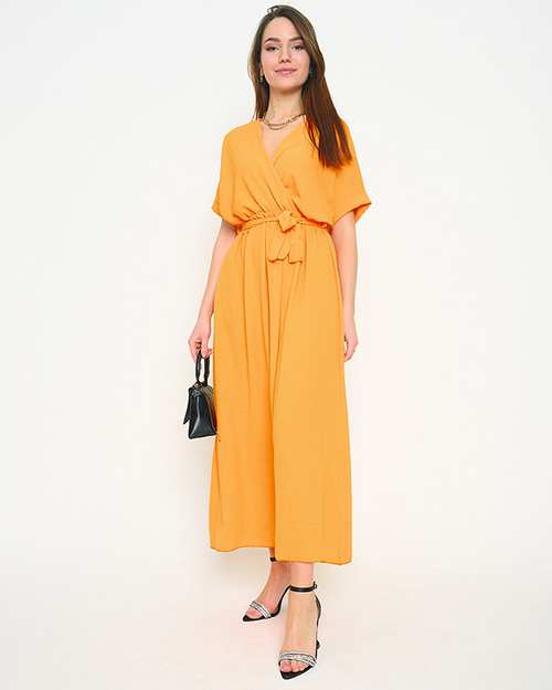 Oranžové dámské rovné šaty s psaníčkovým výstřihem - Oblečení