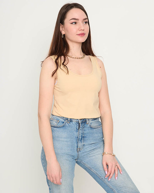 Béžové dámské tričko s ramínky PLUS VELIKOST - Oblečení