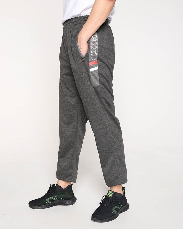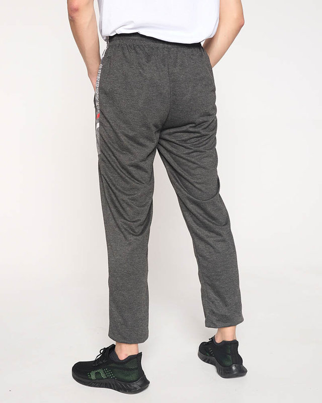 Pánské tmavě šedé tepláky s nápisy - Oblečení