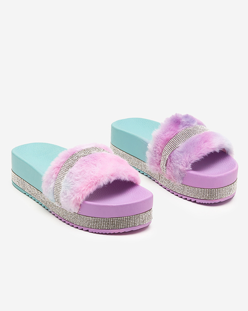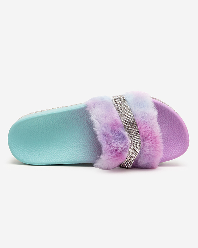 Fialovo-mintové dámské pantofle s kožíškem a kubickými zirkony Zerika - Obuv