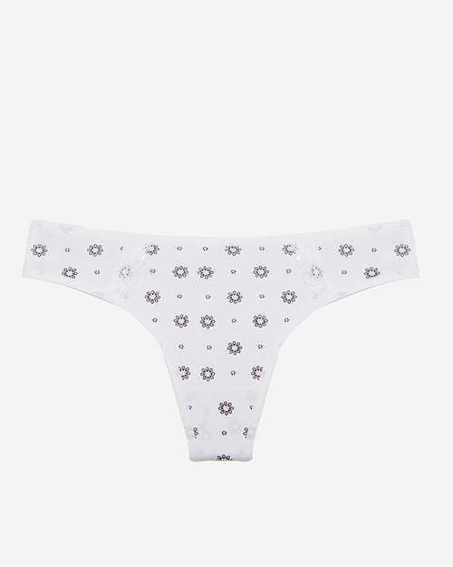 Dámská bílá bavlněná tanga s květinami - Spodní prádlo