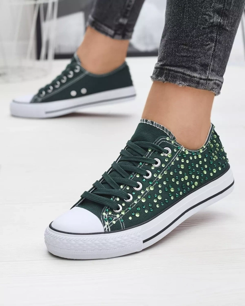 Dámské tenisky s tmavě zelenými kubickými zirkony Amando - Obuv