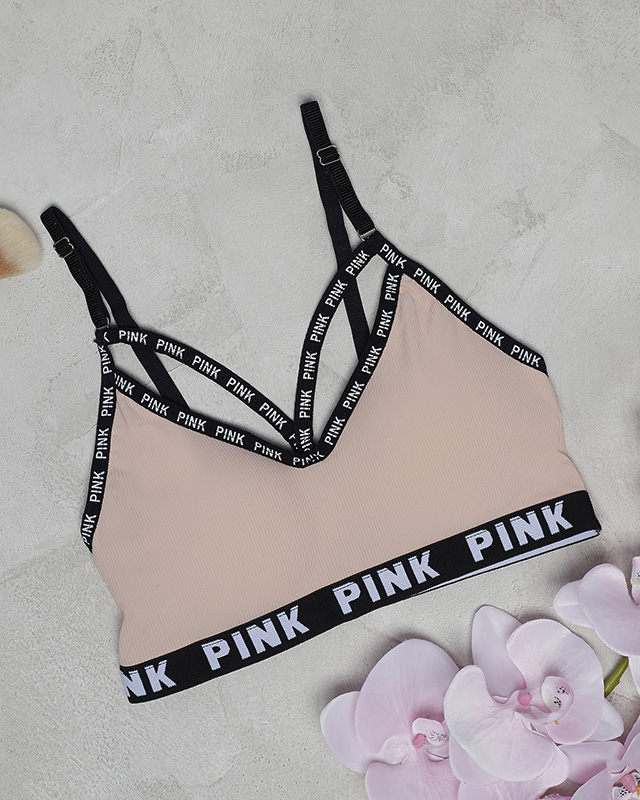 Dámská růžová sportovní podprsenka s nápisy - Spodní prádlo