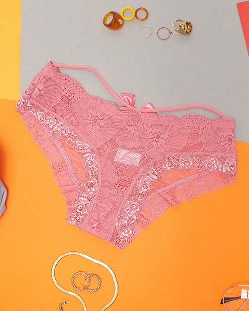 Dámské růžové krajkové kalhotky - Spodní prádlo