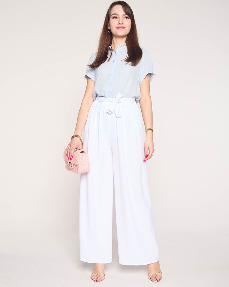 Dámské široké palazzo kalhoty v bílé barvě - Oblečení