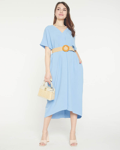 Modré dámské oversize šaty s páskem - Oblečení