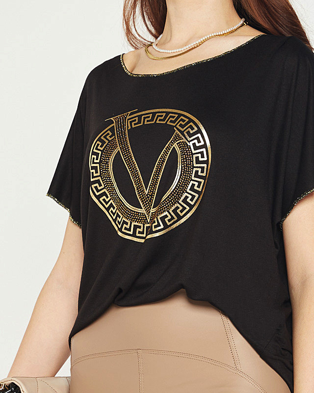 Černá dámská halenka s potiskem a kubickými zirkony - Oblečení