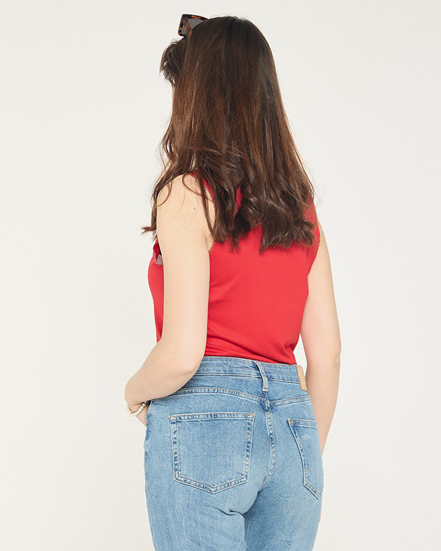 Dámský top se zlatým potiskem v červené barvě - Oblečení