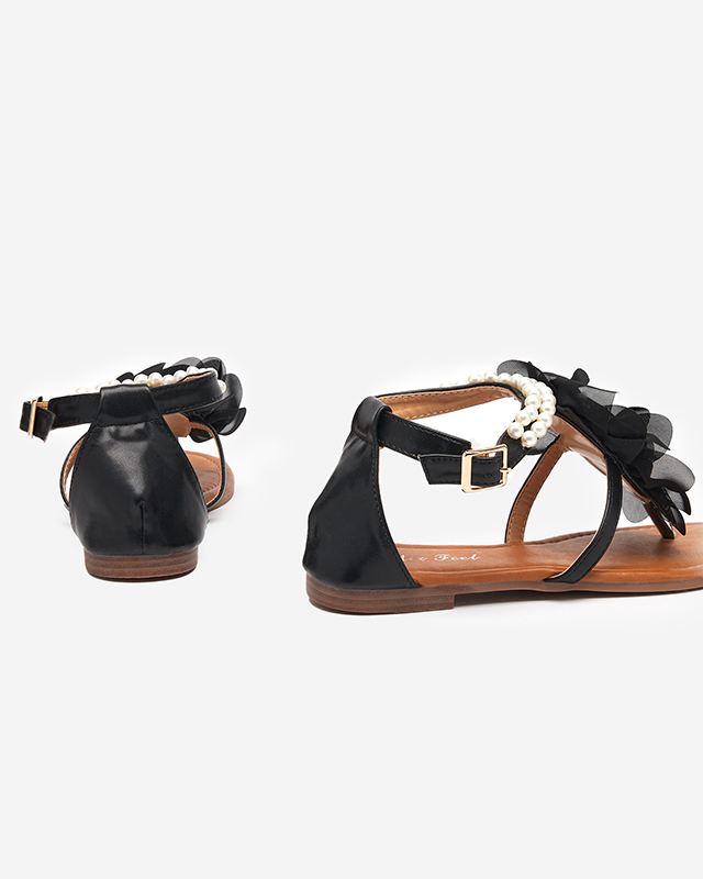 OUTLET Černé dámské sandály s perlami a látkovým květem Amerile - Obuv