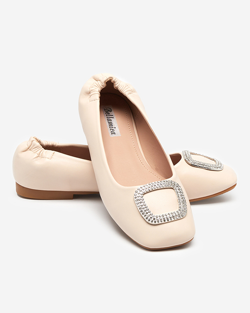 - Elegantní dámské baleríny na plochém podpatku. Na nose ozdoba s kubickými zirkony, svršek a stélka z ekologické kůže. Poznámka: výrobek má na materiálu stopy lepidla.