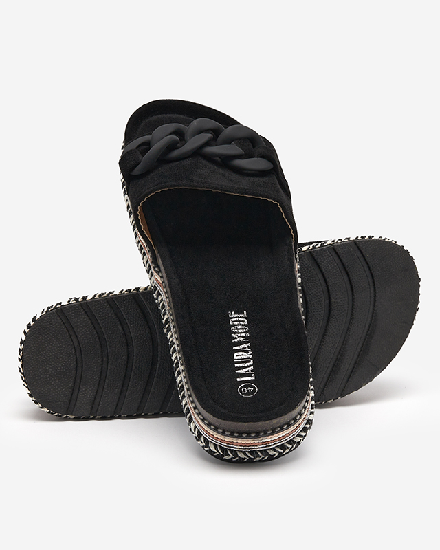 OUTLET Dámské černé pantofle se zdobenou podrážkou Hillam - Obuv