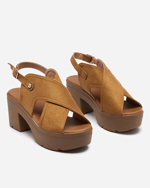 Camel dámské eko semišové sandály na sloupku Mihele - Obuv