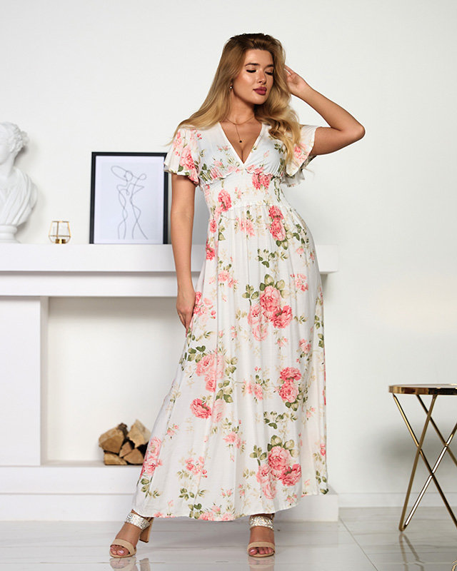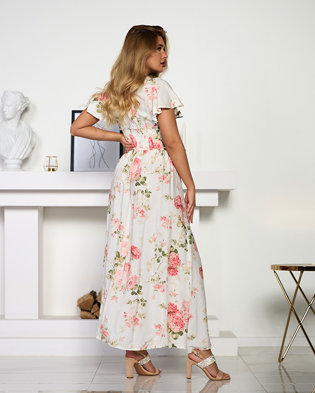 - Vzdušné dámské šaty ke kotníkům s krásným květinovým vzorem. Vyrobeno z tenké bavlněné tkaniny. Model s krátkým rukávem a psaníčkovým výstřihem. POZNÁMKA: Přesnost měření (+/-) 1 cm.