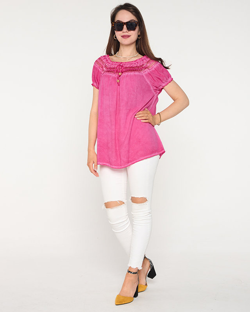 Fuchsiová dámská bavlněná halenka s prolamováním - Oblečení