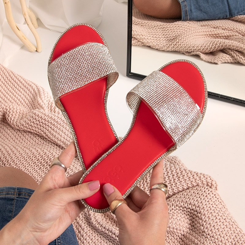 - Fantastické dámské pantofle zdobené kubickým zirkonem, ploché podpatky. Popruh je vyroben z plastu, stélka z ekologické kůže. POZNÁMKA: dekorativní lišta může mít jemné vady, např. Nedostatek jednotlivých zirkonů. Není předmětem stížnosti.