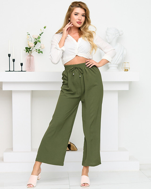 Dámské zelené široké palazzo kalhoty. Oblečení
